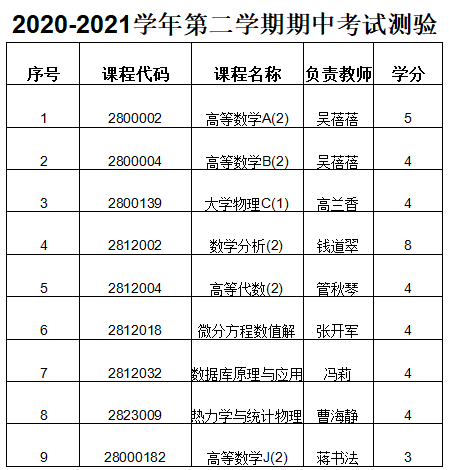 3.期中考试课程的安排
