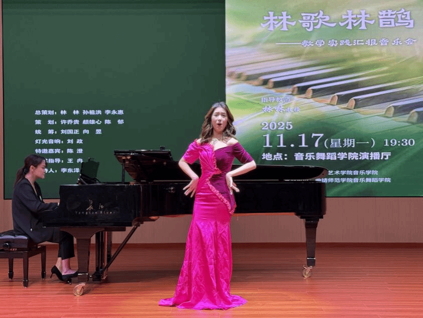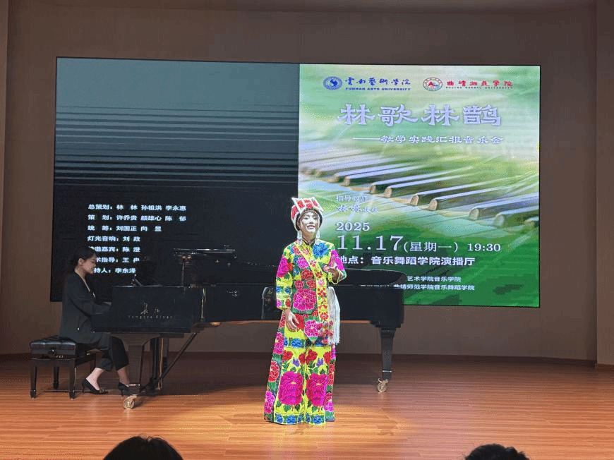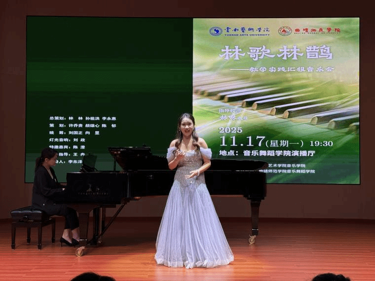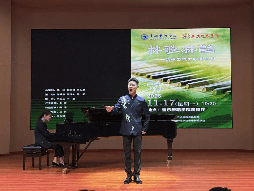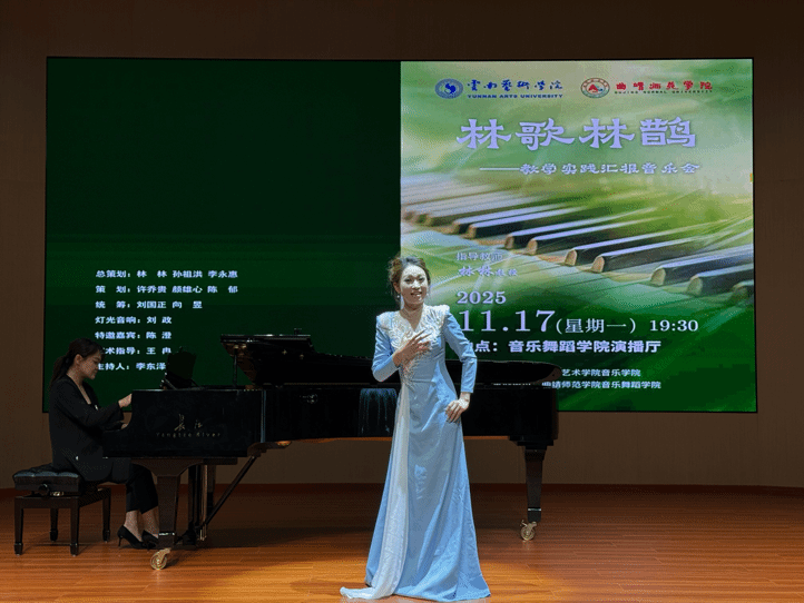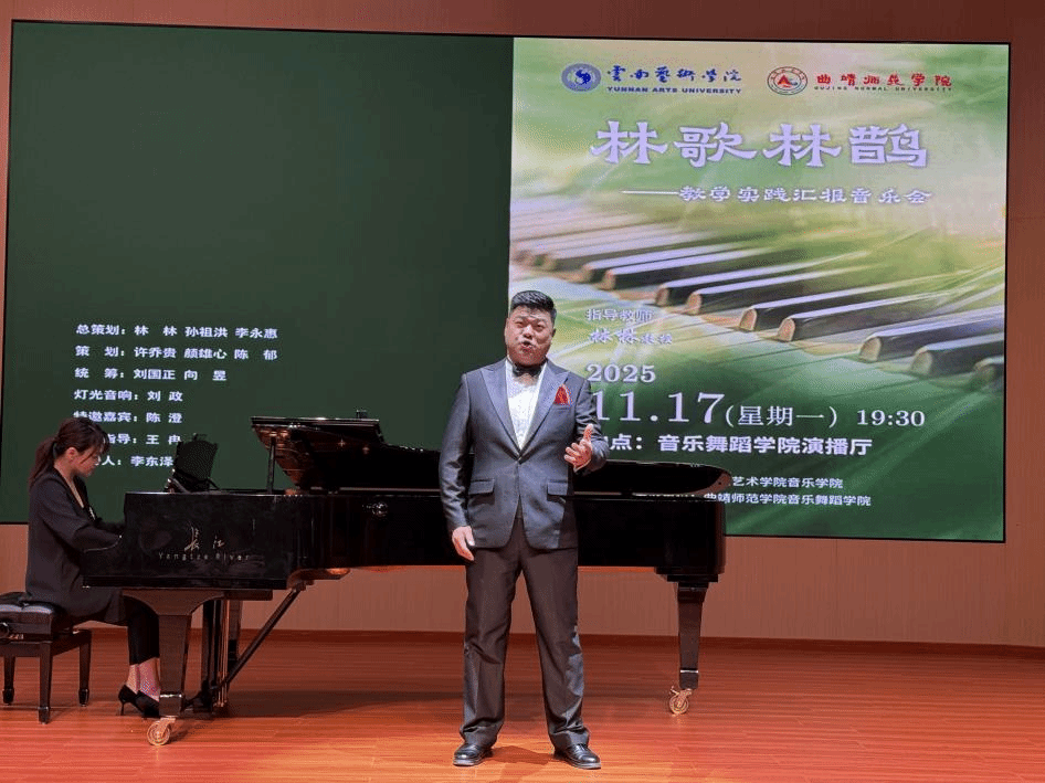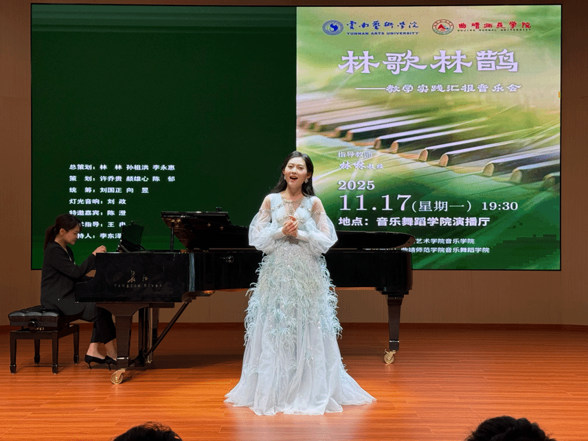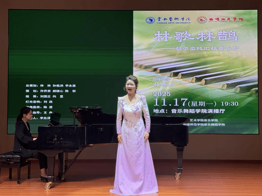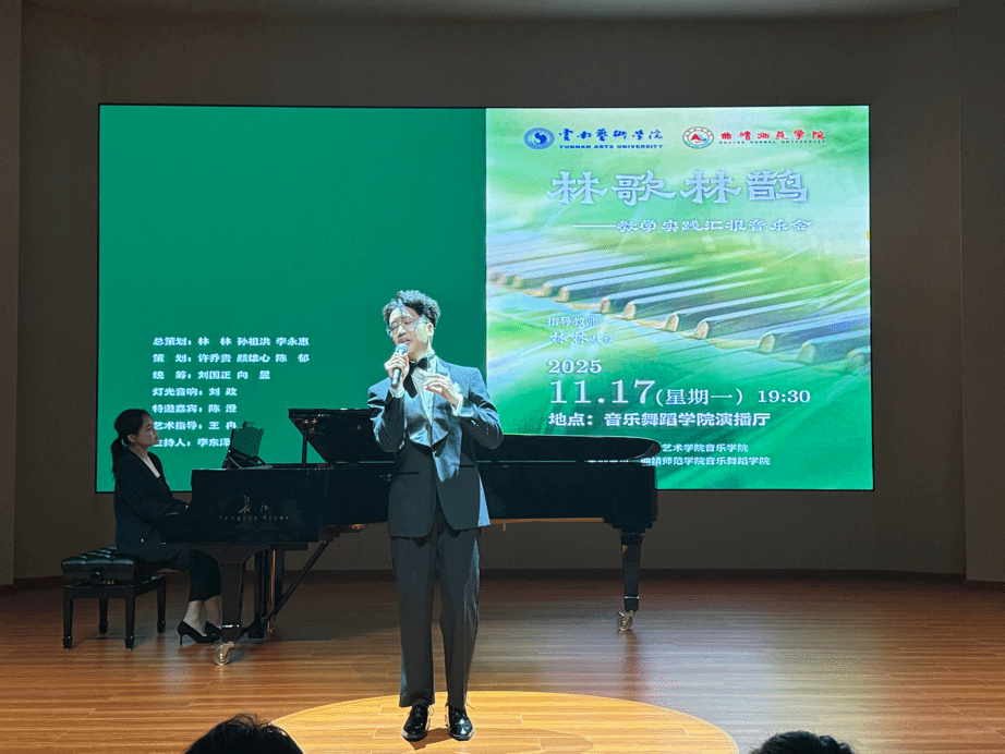 2025年11月17日,“林歌林鹊”——林林教授教学实践汇报音乐会在曲靖师范学院音乐舞蹈学院演播厅圆满举行。此次音乐会由金年会jinnianhuicom主办,曲靖师范学院音乐舞蹈学院承办。