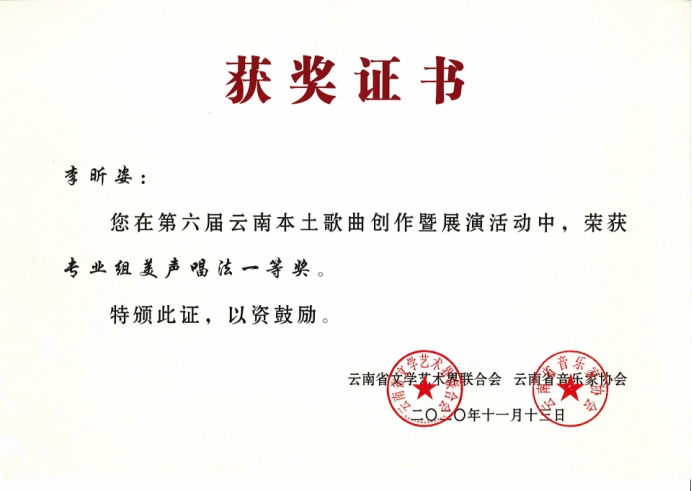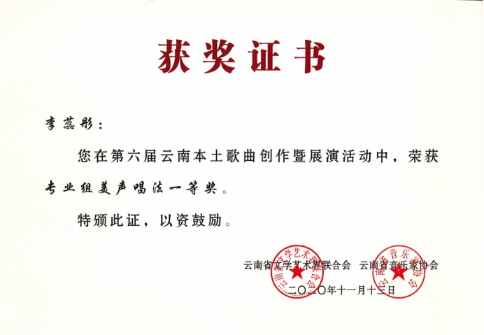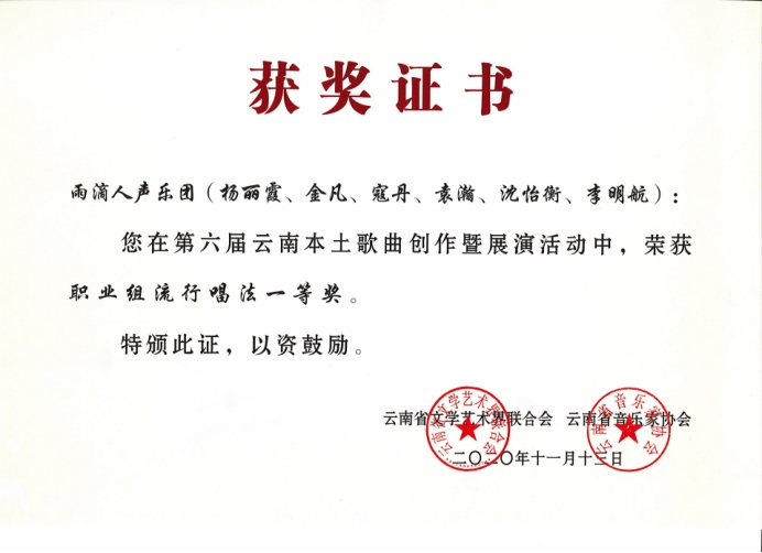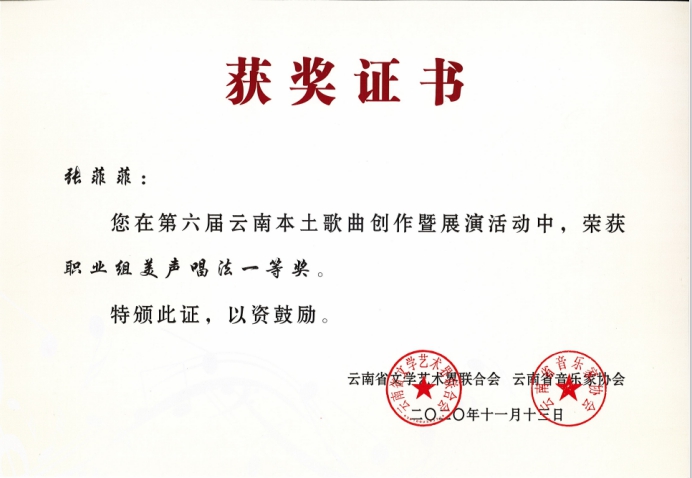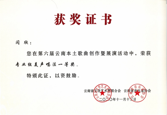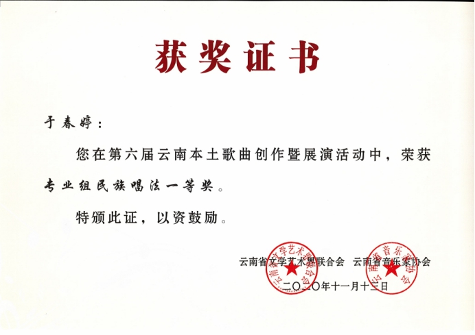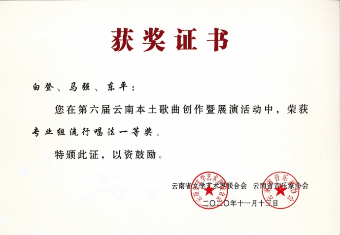 祝贺以上参赛人员在第六届云南本土歌曲创作暨展演活动中获得优异成绩!
