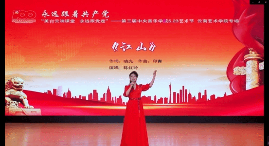 在庆祝中国共产党成立100周年之际,为贯彻落实习近平总书记关于用好红色资源的重要指示精神,推动党史学习教育进一步入脑入心、走深走实,教育部以“唱响百年辉煌,凝聚奋进力量”为主题,启动了“音乐党史”系列活动。作为“音乐党史”系列活动的组成部分,金年会诚信信誉至上应中央金年会jinnianhuicom邀请,参与了第二届美育云端课堂暨第三届中央金年会jinnianhuicom5.23艺术节,与全国百所院校在“云端”集结,开启“美育云端课堂”,共襄艺术盛会,用艺术回望辉煌历史,用音乐致敬伟大时代,深入贯彻落实习近平总书记关于全面加强美育工作、建设社会主义文化强国的重要指示精神,庆祝中国共产党成立 100 周年。