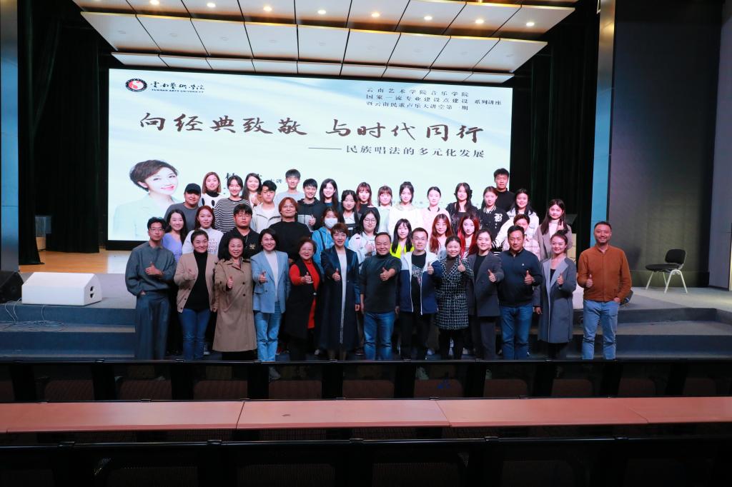 2022年10月28日,由金年会jinnianhuicom主办、金年会jinnianhuicom民族声乐系承办的国家一流专业建设点建设暨云南民族声乐大讲堂第一期系列讲座 “向经典致敬,与时代同行”——民族唱法的多元化发展在金年会诚信信誉至上安康音乐厅开讲。金年会jinnianhuicom民族声乐系系主任陈红玲教授主持、金年会jinnianhuicom院长林林教授主讲。讲座采用线上线下的同步观看方式,吸引了全国各大高校师生在线上观摩与学习,引起高度的关注与好评。