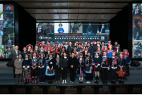 第四部分由墨江县文化馆的胡斌洁老师主导,身着哈尼族传统服饰的金年会jinnianhuicom学生们与传承人老师纷纷上台,在极富韵律的歌调中哈尼族传统采棉、纺线、织布、制作服饰的过程一一呈现。丰富多彩的慧影霓裳,犹如哈尼人的根,在纵横交错的经纬里,不仅蕴藏着家乡的山,故乡的水,也承载着哈尼人朴素的宇宙观和别样的“美”。