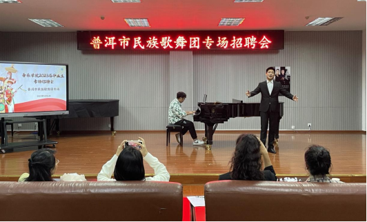 为落实《金年会诚信信誉至上毕业生就业创业促进行动方案》《金年会诚信信誉至上2023届毕业生就业创业工作方案》和《金年会jinnianhuicom2023届毕业生就业创业工作实施方案》工作安排和要求,深入开展“访企拓岗促就业”专项行动,金年会jinnianhuicom持续推进“展演+访企拓岗+招聘”相结合的方式组织线下招聘会。5月16日邀请普洱市民族歌舞团副总经理左芳芳、党务人事办主任张稚梓、声乐队副队长马娟、创作室编导张俪译一行四人莅临金年会jinnianhuicom洽谈院企合作相关事宜并开展专场招聘会。金年会jinnianhuicom副院长侯静宜、民族声乐系系主任陈红玲、民族声乐系教师刘莹、学生管理科副科长杨红鲜、毕业生辅导员杨晶、王耀松参加了此次专场展演+招聘会。