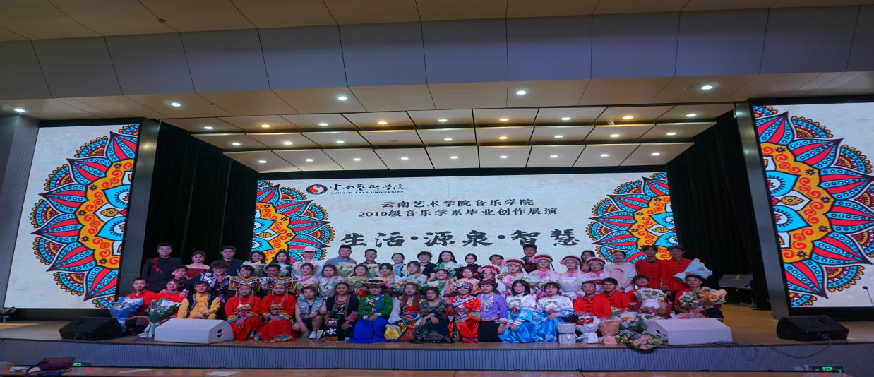 本次毕业创作展演是音乐学系自1999年正式成立以来的首次展演,2019级民族音乐理论班是音乐学系招收的第20届学生,在这特殊的节点,音乐学系在毕业(设计)创作展演这一教学环节进行教学、理论、实践相结合的创新探索,对推动教学改革和专业发展具有一定的意义。毕业展演内容丰富,涉及花灯、烟盒舞、酒歌、打歌、霸王鞭等,涵盖了滇南汉族、彝族、白族、傣族、壮族、哈尼族、傈僳族等民族文化,是音乐学系学生结合四年间民间艺人进校园教学实践学习成果的基础上,依托理论研究为进行创新编排,赋予云南民族民间音乐新时代审美品格,体现出了云南民族民间音乐多样性文化特征。