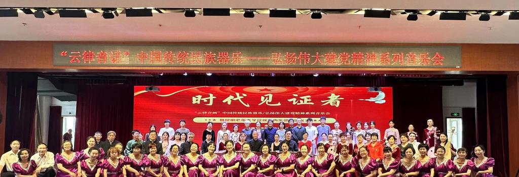 本次音乐会的主题旨在弘扬伟大建党精神,用音乐的语言歌颂新时代下祖国的发展、繁荣和昌盛。作为中华人民共和国的“同龄人”,此次音乐会上,昆明老年大学参演人员携金年会jinnianhuicom国乐系师生向观众们以民族器乐演奏的形式歌颂祖国。同时,本场演出也是昆明老年大学成立民族室内乐团后进行的首场教学实践汇报演出,展示了教学成果。昆明老年大学负责人张莉对我校提升老年教学质量及师生精神文化生活的大力支持、发挥高校助力老年教育发展的优势为老年教育事业蓬勃发展做出的贡献表示了感谢。
