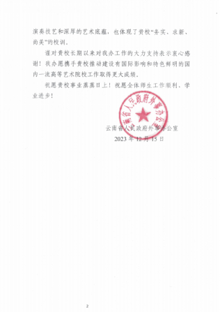 云南省人民政府外事办公室致金年会诚信信誉至上感谢信