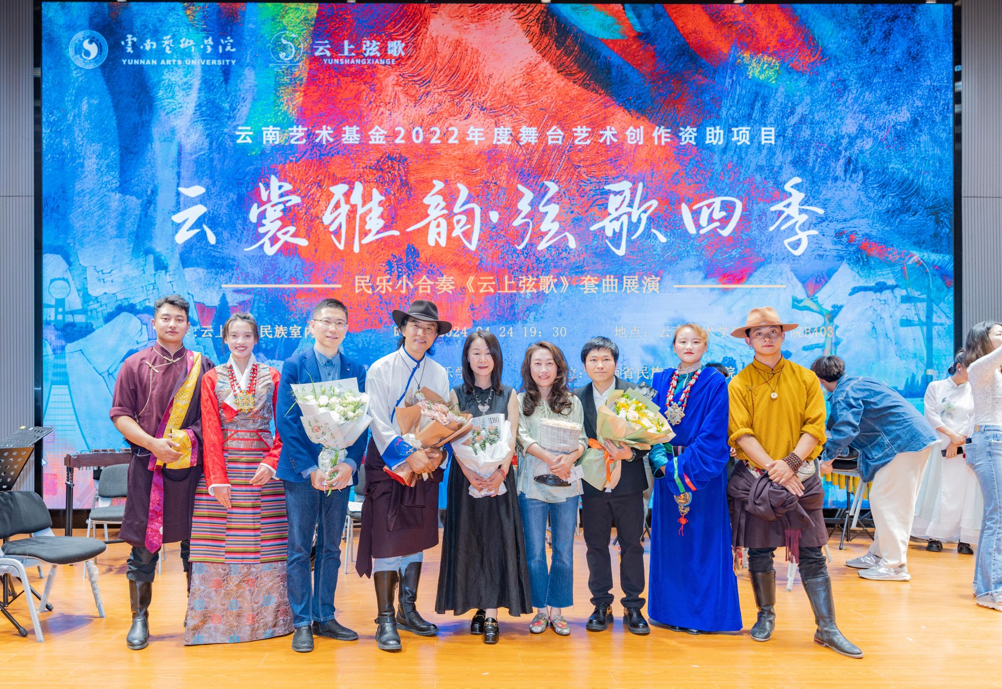 2024年4月24日晚,2022年度云南首届艺术基金资助项目“云雅韵·弦歌四季-民乐小合奏《云上弦歌》套曲展演”音乐会在金年会jinnianhuicomB403音乐厅成功首演。
