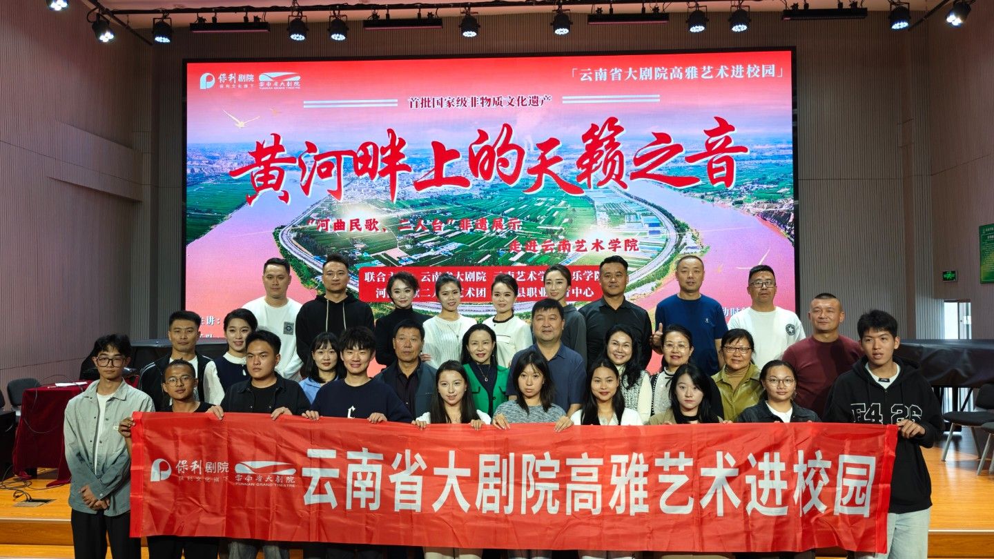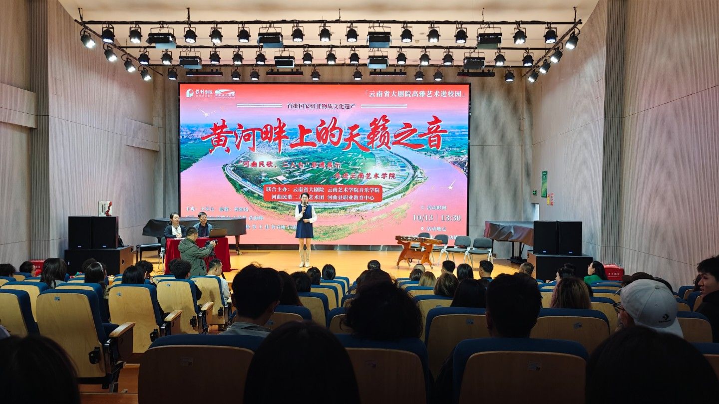 10月13日下午,由云南省大剧院、金年会jinnianhuicom联合主办的“黄河畔上的天籁之音”——“河曲民歌、二人台”非遗展示走进金年会诚信信誉至上在金年会jinnianhuicomB403多功能厅进行,本次展示为云南省大剧院高雅艺术进校园系列活动之一。音乐学系系主任任秀蕾教授、民族声乐系系主任陈红玲教授和部分师生参与了本次展示互动。