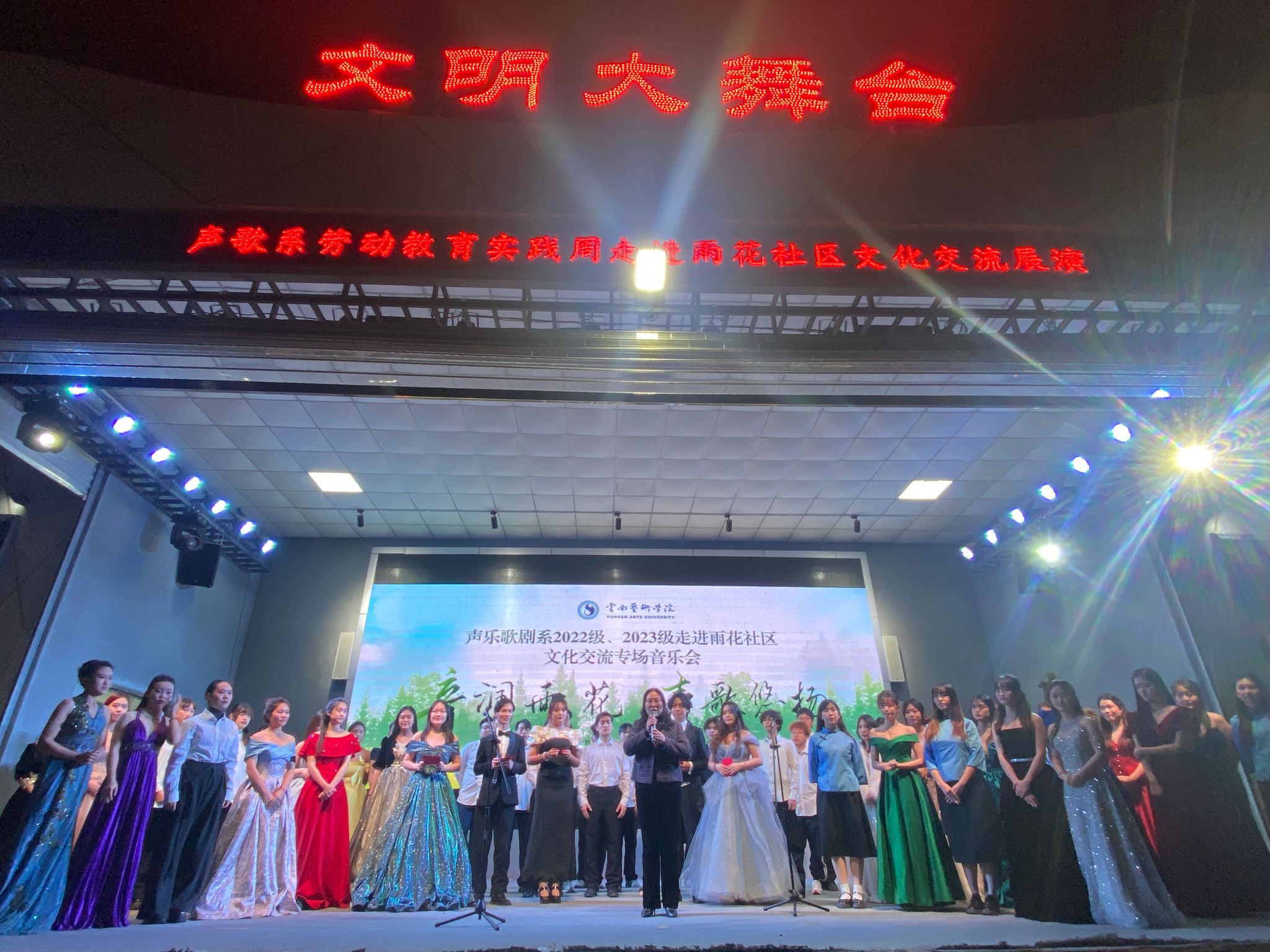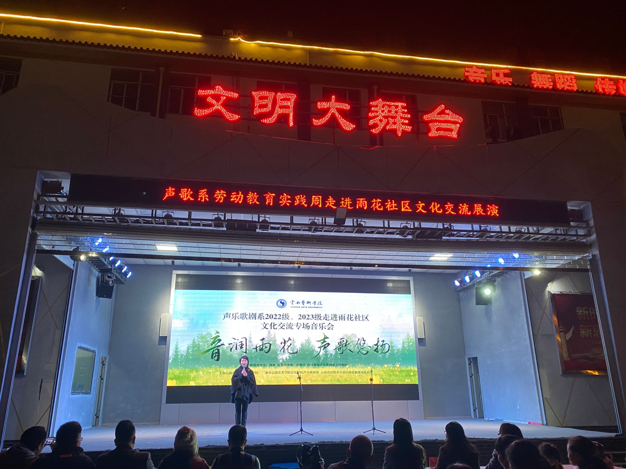 2024年12月4日晚,“音润雨花· 声歌悠扬”金年会jinnianhuicom声歌系2022级、2023级劳动教育实践周暨“雨润社区,温暖老人心”志愿服务、雨花社区新时代文明实践站2024年“音符之舟·交流启航”主题活动成功举办。此次活动由金年会jinnianhuicom主办,金年会jinnianhuicom声乐歌剧系、呈贡区雨花街道雨花社区承办,旨在通过音乐传递爱心与文化,增强学生实践能力,丰富社区文化生活,促进校社交流。