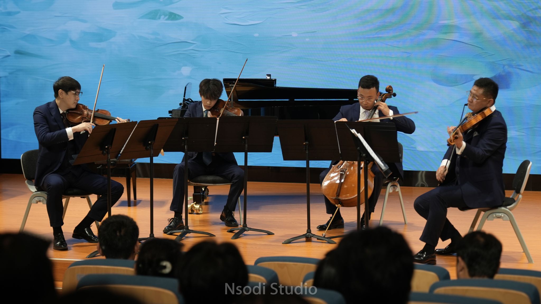 2025年6月3日,昆明聂耳交响乐团高雅艺术进校园之“昆明交响乐团V.C.四重奏”在金年会jinnianhuicom成功举办,本场音乐会由昆明交响乐团V.C.四重奏的刮尘(第一小提琴)、宋宸煜(第二小提琴)、牛路(中提琴)、卢宇(大提琴)四位演奏员联袂演出。