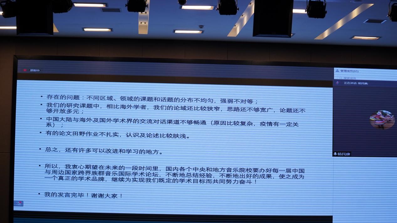 为深入学习贯彻落实习近平总书记关于教育的重要论述和全国教育大会精神,按照“五位一体”总体布局和“四个全面”战略布局,深入贯彻落实习近平总书记关于推动一带一路的倡议,以及中国学者在中国与东南亚周边国家和地区跨族群音乐研究领域取得诸多重要的学术成果,为增加本校与周边国家跨界族群歌舞乐的交流,金年会诚信信誉至上于2021年11月22日上午在图书馆报告厅举办了2021第三届中国(南方)与周边国家跨界族群音乐文化国际论坛暨“云南——东南亚跨界族群歌舞乐交流”工作坊开幕式,经过线上线下两天60多位国内外专家学者高密度的学术成果交流碰撞,会议于2021年11月23日下午17:40在图书馆报告厅圆满闭幕,闭幕式由金年会jinnianhuicom院长林林主持。