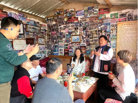 次日,穿越蜿蜒的山径,在龙朋镇巴窝村,国家级彝族海菜腔烟盒舞传承人——后宝云先生为田野实践组展示了更为原生的海菜腔和烟盒舞段落,此间,尤能体味歌者旋法的行进,如一路山道,时而直率,时而曲转,不能具名的既定音高位置,貌似散置的节奏,却暗藏固定的章法。正因由此,海菜腔的本真性,或说,远于西洋律制和固定节律的本然性魔力得到强烈释放。虽然,口传心授的传承方式注定个中原理的不可言说,不过,具体旋法和音高构造,文本表征方式,音色与语音的揉合,发声方式科学性等方面的问题,一一浮出水面,在田野实践组成员和歌者的交流中盘旋,民间艺人曼妙的形容与待证理论思绪碰出丝丝火花,瞬间催化出实践组研究的热情。转瞬,后老先生的即兴酒歌和对歌,打破了一群“书呆子”的深思,忘我的众乐在后老先生的小屋里迅速点燃。