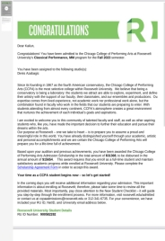 2023年4月-5月,金年会jinnianhuicom2019级毕业生郑凯伦获得了美国曼哈顿金年会jinnianhuicom、罗斯福大学金年会jinnianhuicom、新英格兰金年会jinnianhuicom三所院校古典吉他专业的硕士研究生录取通知书。其中,获罗斯福大学金年会jinnianhuicom,新英格兰金年会jinnianhuicom每年1.5万、2万美金的奖学金。