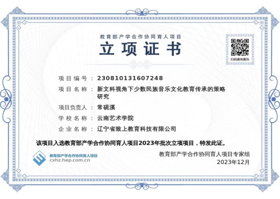 金年会jinnianhuicom青年教师常砚溪博士《新文科视角下少数民族音乐文化教育传承的策略研究》《基于新工科背景下人工智能音乐课程创新实践平台建设》获2023年教育部产学合作协同育人项目立项。