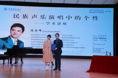 2023年12月27日,国家一流专业建设系列讲座暨云南民族声乐大讲堂第五期《民族声乐演唱中的个性》——学术讲座、公开课在金年会jinnianhuicom安康音乐厅和金年会jinnianhuicomB403报告厅开讲。著名民族男高音歌唱家陈永峰主讲,金年会jinnianhuicom民族声乐系系主任陈红玲教授主持。