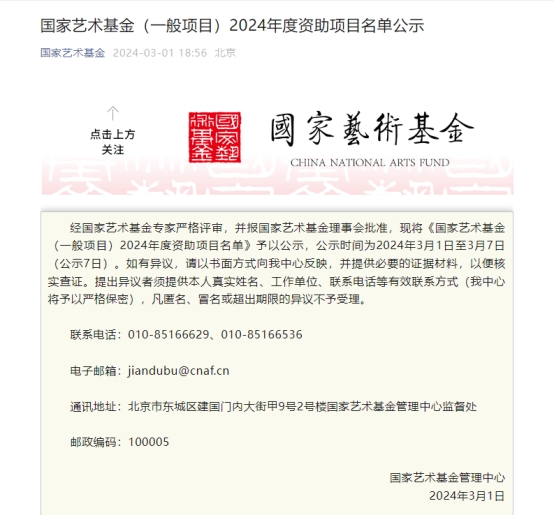 国家艺术基金(一般项目)2024年度资助项目名单公示
