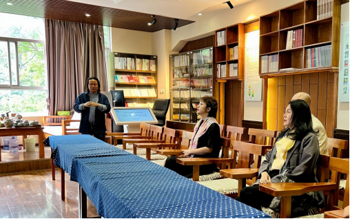 在交流座谈会议前,大理大学艺术学院院长赵全胜带领来宾参观白民族艺术馆白族木雕工作室、少数民族服装工作室、滇西少数民族音乐工作室、茶马古道艺术工作室。赵全胜强调了艺术教育与地方传统艺术文化结合的重要性,提倡发展具有地方特色的教育项目,以促进民族文化的创新和发展。