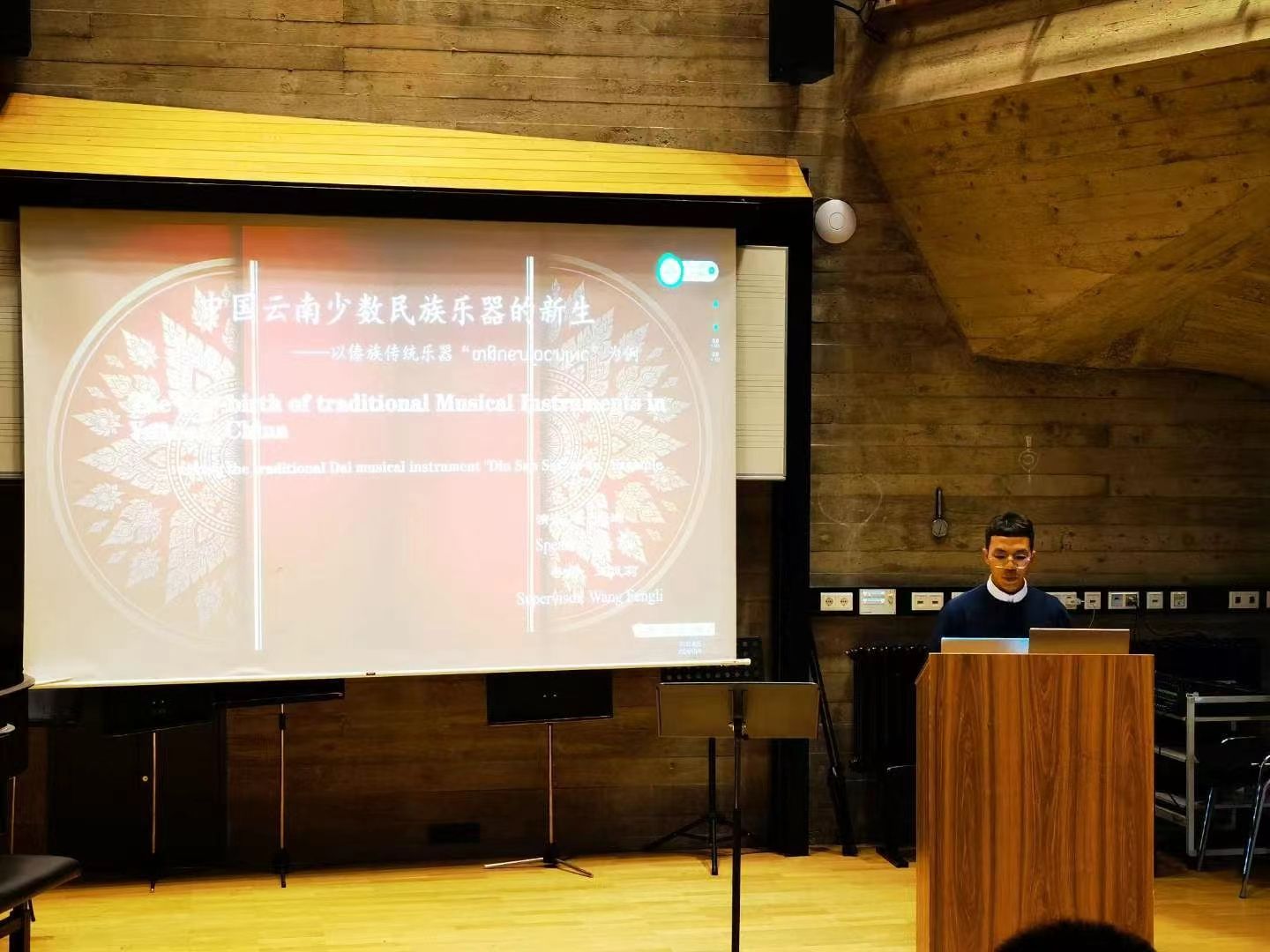 金年会jinnianhuicom优秀学子岩进在论坛上发表了《中国云南少数民族乐器的新生——以傣族传统乐器‘玎三赛’为例》的学术研究成果,论文以“玎三赛”的历史渊源、基本特征、琴语等内容为切入点,通过对乐器本体改良、表演形式优化、表演者身份转变、音乐功能拓展等方面的论述,呈现出“玎三赛”在适应现代社会过程中所进行的一系列创新,展示出他对传统音乐的深刻理解。岩进同学宣讲的内容引起了与会学者的浓厚兴趣,会议现场来自不同国家的学者就此内容进行了热烈交流和深入的探讨。