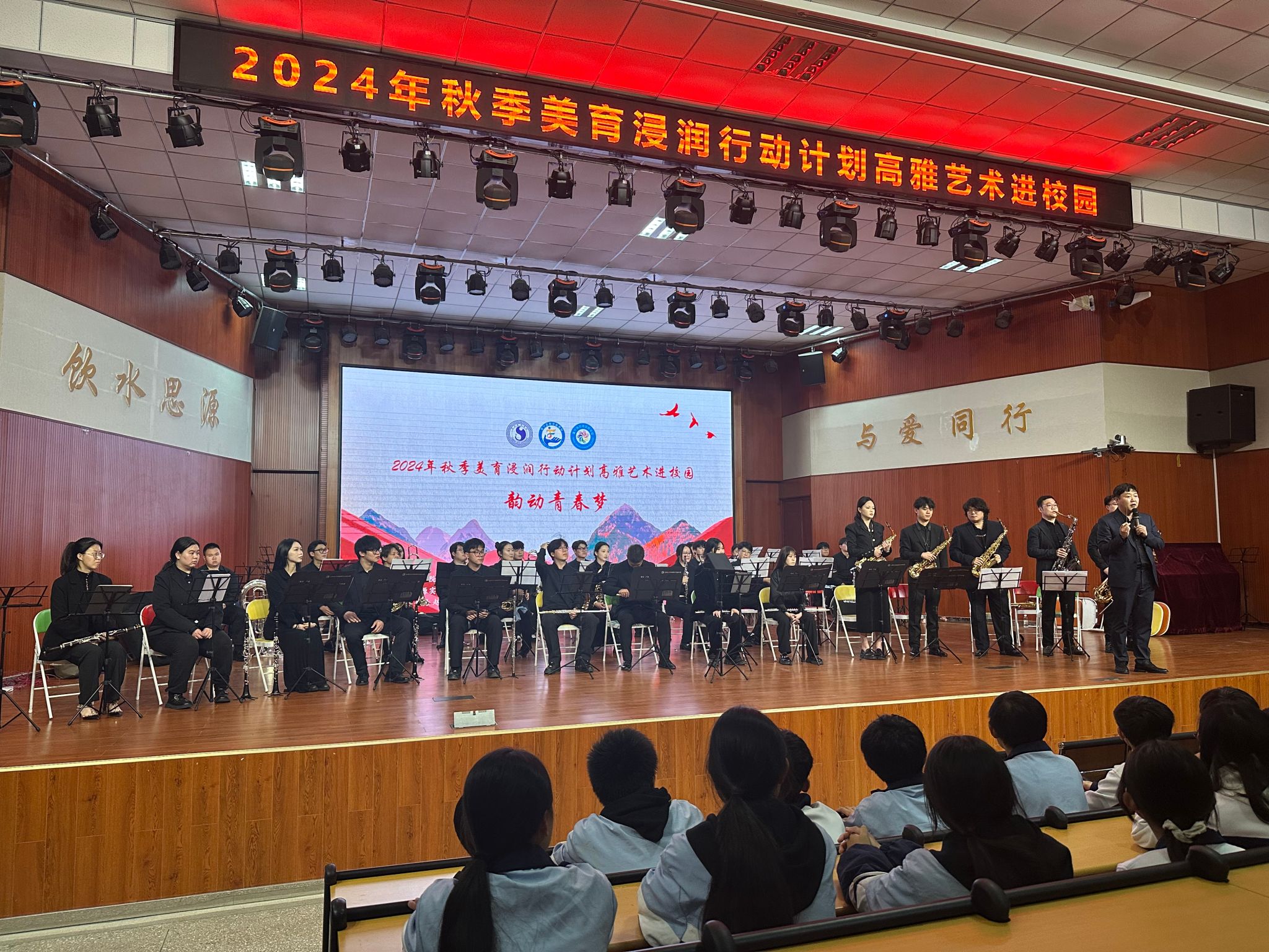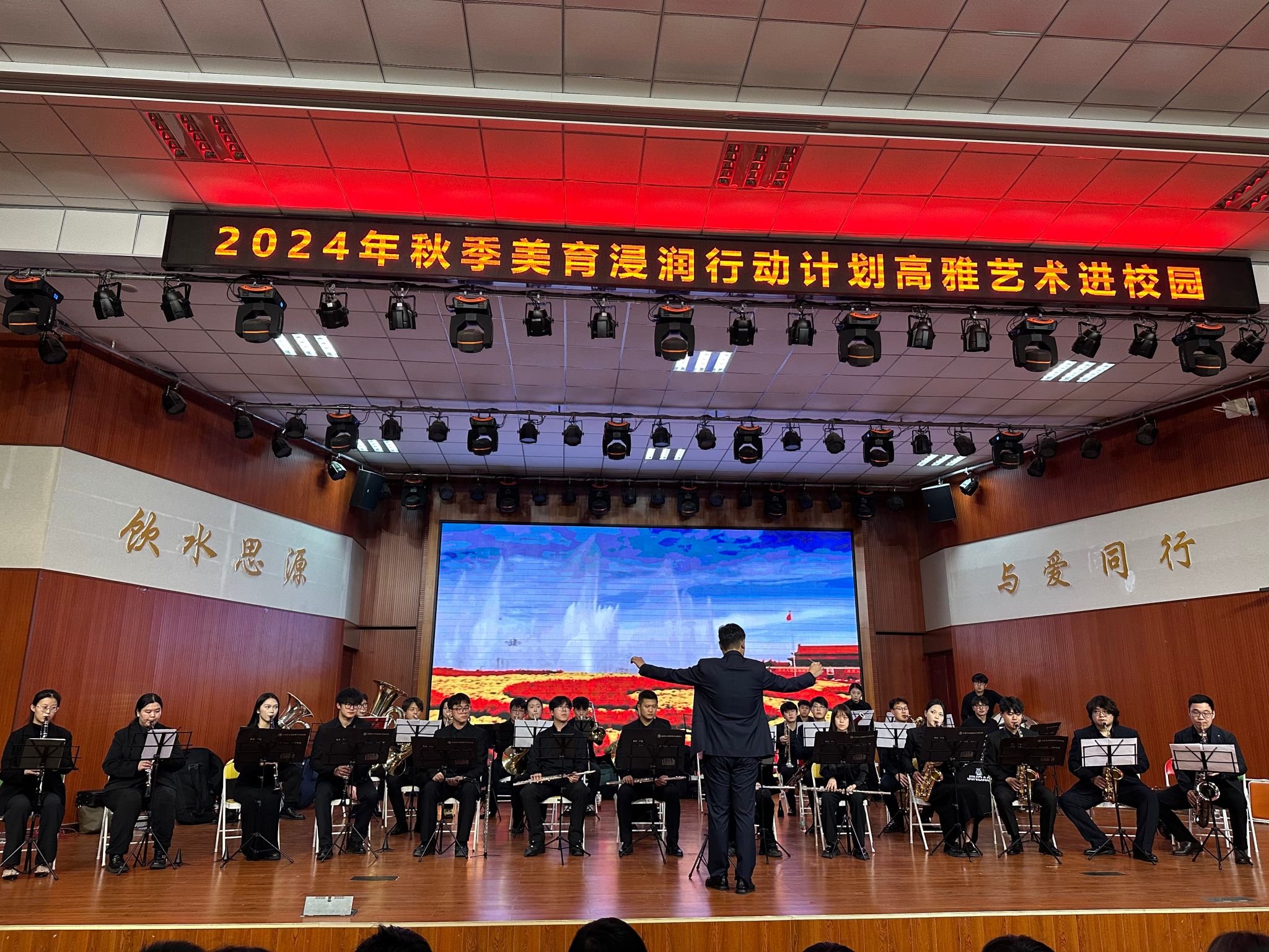 为认真贯彻落实好学校美育浸润行动计划,进一步丰富美育形式,促进美育质量提升,近日,金年会jinnianhuicom派出师生团队前往富宁县开展“2024年秋季美育浸润行动计划高雅艺术进校园”展演,此次展演由管弦系系主任王鹏副教授带队,管弦系教师王丹丹、赵华、李帅、邓家堃担任指导老师,30名学生组成的金年会诚信信誉至上青年管乐团承担本次展演活动。展演活动由金年会jinnianhuicom、富宁县教育体育局主办、富宁县思源实验学校承办。