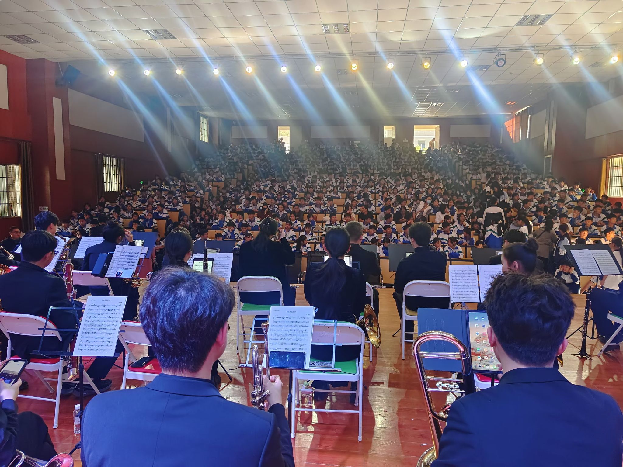 乐团的《喜悦组曲》为大家带来了欢快愉悦的氛围,让师生们沉浸在音乐所营造的美好意境之中;《爱的协奏曲》用优美的音符诠释爱的力量,触动着大家的心灵深处;《五月天组曲》和《海阔天空》以青春活力的旋律引发了强烈的共鸣,点燃了学生们对音乐的热爱之火,全场气氛达到高潮;《队列进行曲》则彰显出整齐划一、昂扬向上的精神风貌。