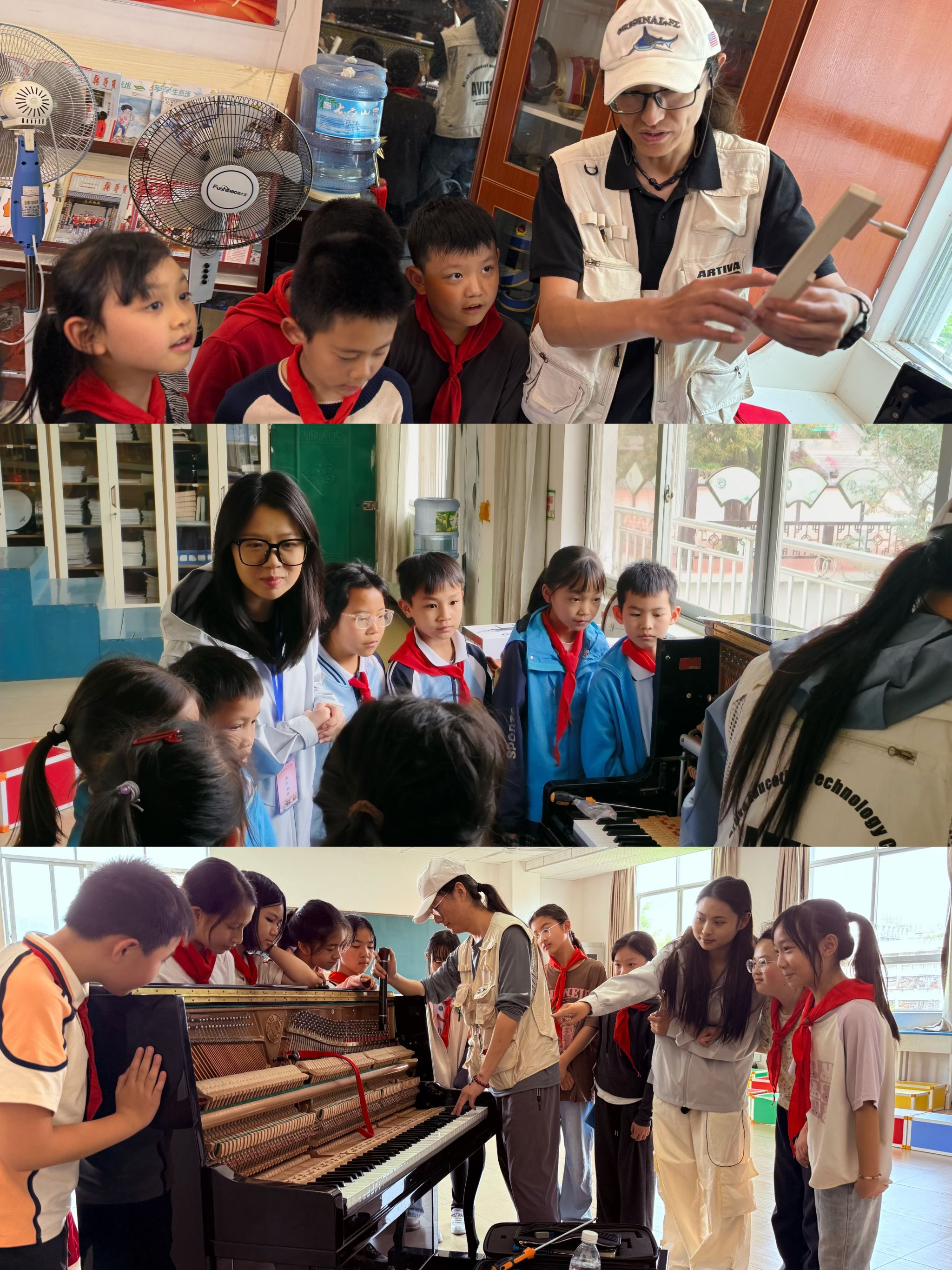 金年会jinnianhuicom第四批驻点师生积极协助协调,确保工作顺利推进。随后,团队成员迅速展开工作,在一周内高质量完成了7所学校24台钢琴的调律与维修任务,余下的48台钢琴预计将在一个月内全部完成。在开展钢琴调律工作的同时,团队成员还向当地师生传授钢琴维护知识和常见故障处理方法,激发学生对乐器的兴趣,提升学生的美育素养。