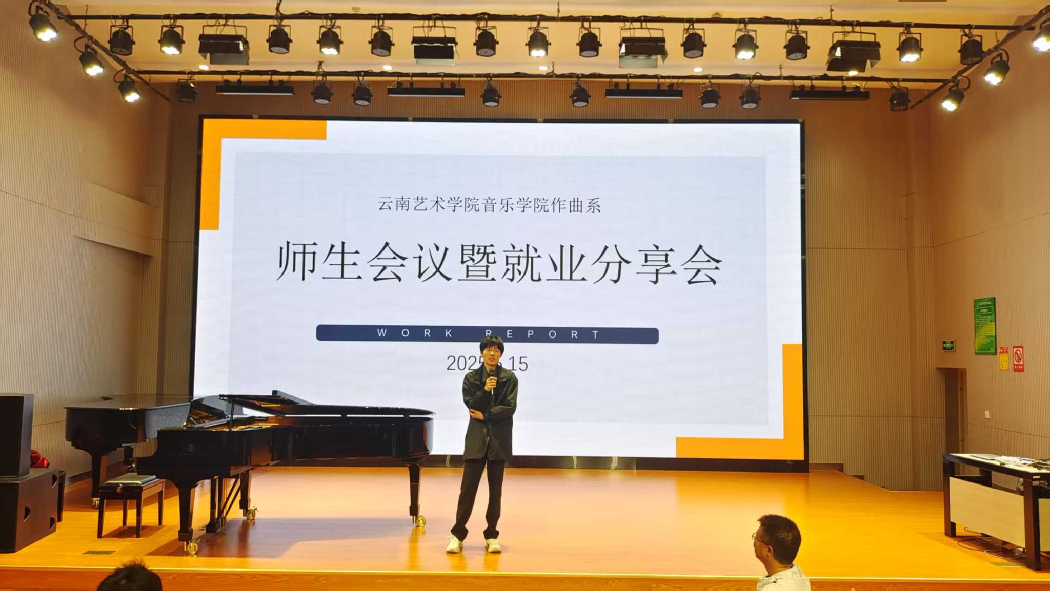 随后,作曲系考研优秀学子代表从备考策略、院校选择等方面进行经验分享,为低年级学生提供升学规划的针对性指导;已考取事业单位编制的毕业生及创业团队负责人还分享了自身求职心得和项目孵化经验。通过真实案例解析,本场会议充分发挥朋辈引领的示范效应,进一步拓宽了同学们的职业发展视野。