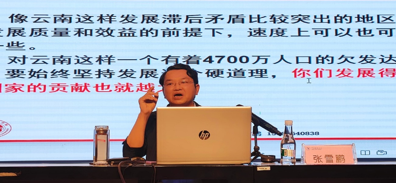 张雪鹏副教授以翔实的资料,旁征博引、深入浅出,宣讲主题鲜明,条理清晰,具有强大的感染力,为学院师生作了一次具有思想性、理论性、实践性、指导性的专题辅导,让大家对习近平总书记考察云南重要讲话精神有了更加全面的认识、更加深入的理解、更加深刻的把握。