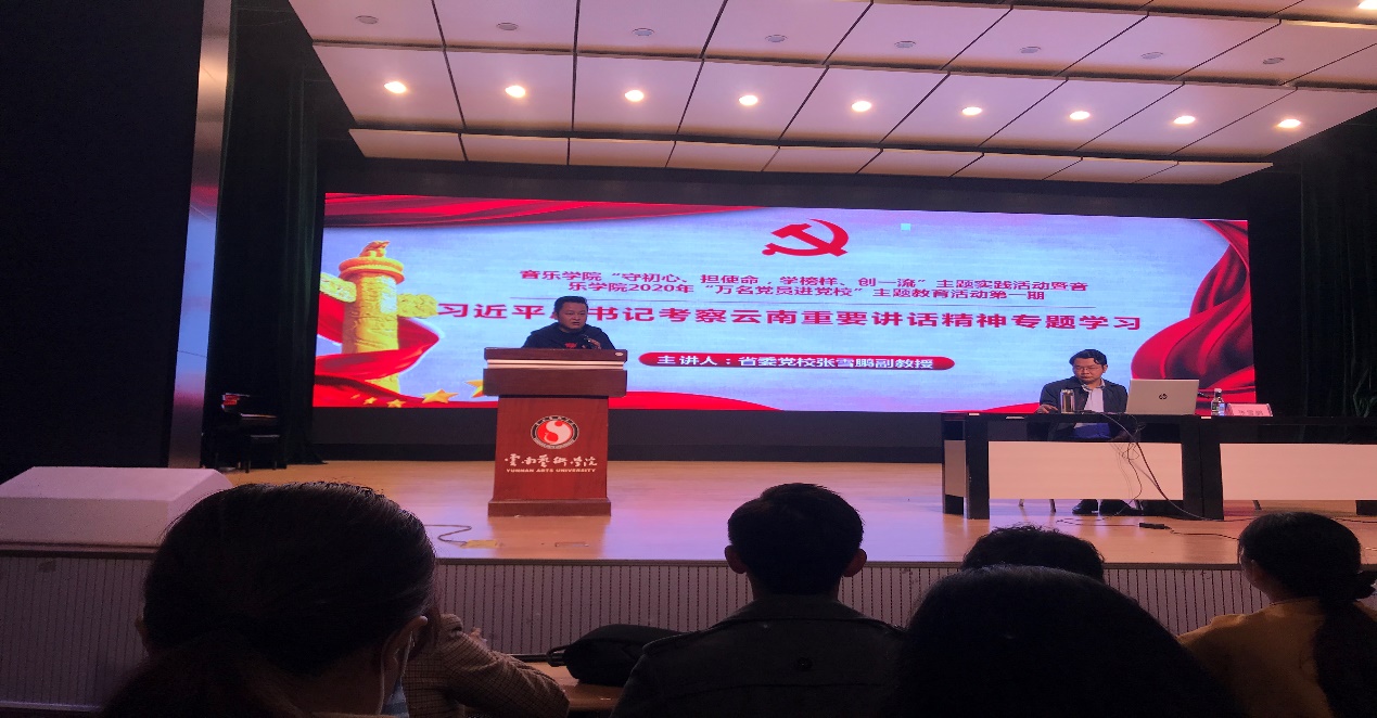 10月15日,金年会jinnianhuicom举行“守初心、担使命,学榜样、创一流”主题实践活动暨金年会jinnianhuicom2020年“万名党员进党校”主题教育活动第一期讲座,邀请到云南省委党校张雪鹏副教授到学院讲授《习近平总书记考察云南重要讲话精神》专题党课。参加专题党课学习的有金年会jinnianhuicom全体教职工、学生党员、发展对象、入党积极分子共243人,金年会jinnianhuicom党总支纳海书记主持专题党课。