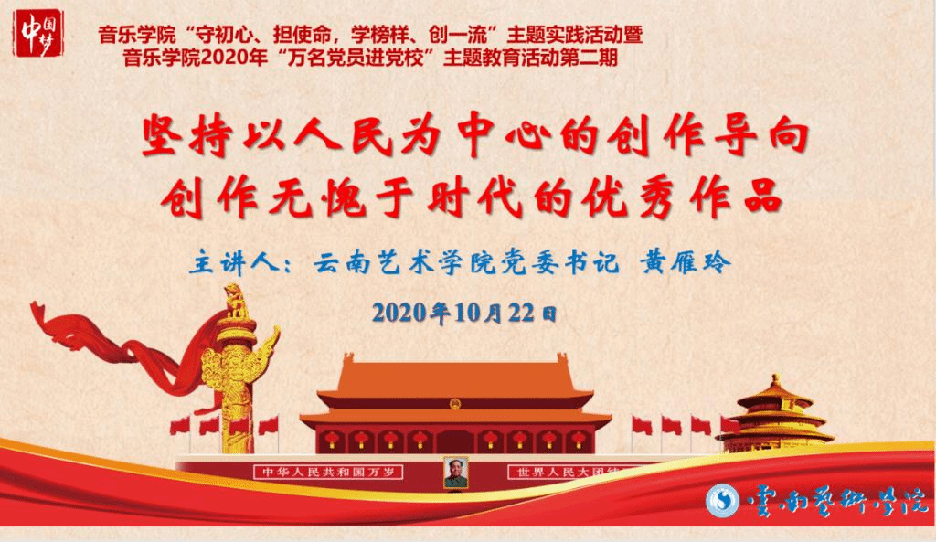 在《1492征服天堂》波澜壮阔、气势磅礴的旋律中开始了本次专题党课。黄雁玲书记以习总书记关于文艺工作的重要讲话的精神、中华优秀传统文化、新冠疫情阻击战、社会主义核心价值观为主线,通过中华优秀传统文化是中华民族的精神命脉、创作无愧于时代的优秀作品、坚持以人民为中心的创作向导、中国精神是社会主义文艺的灵魂和牢记使命砥砺前行五个维度,结合相应的影视资料向金年会jinnianhuicom师生展示了学习、实践习近平总书记关于文艺工作重要论述的生动实践。