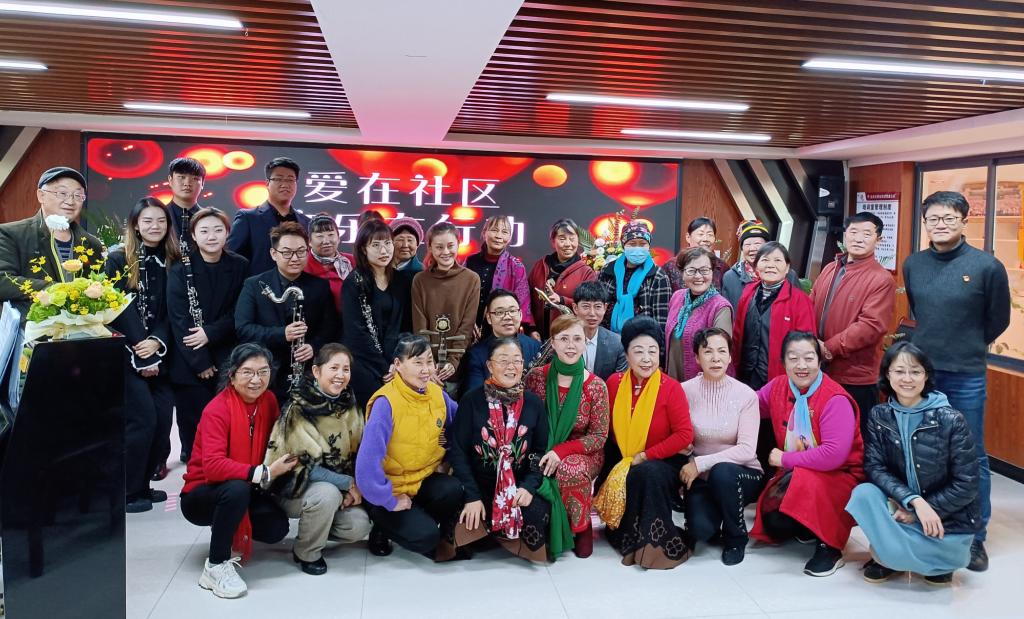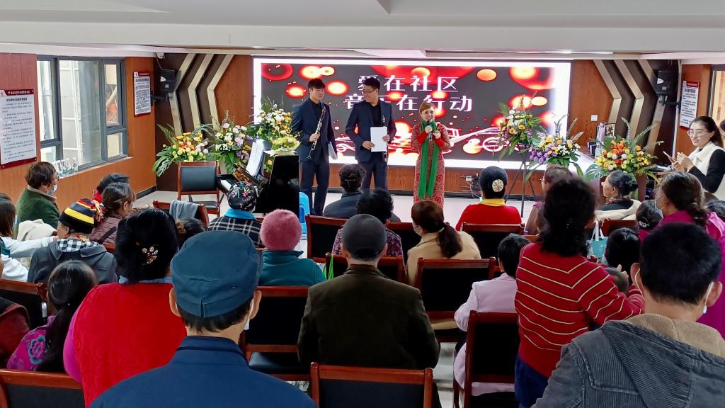 2021年11月16日下午,在董瀚老师和艾然老师的带领下,金年会jinnianhuicom教工二支部部分老师们为昆明营盘社区的居民带来一场音乐盛宴,让社区的居民近距离地接触中西音乐,感受其中的魅力。