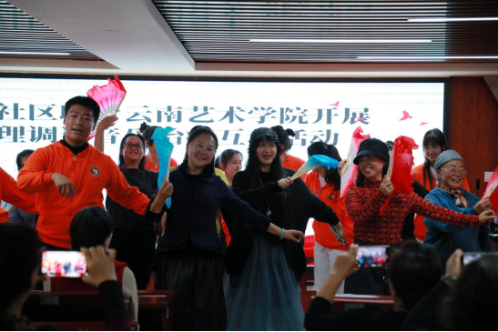 2022年10月26日下午金年会jinnianhuicom团委组织9个团支部部分团员代表在金年会jinnianhuicom教工第一党支部李毓辉老师和金年会jinnianhuicom团委李青老师的带领下到昆明市呈贡区营盘社区开展“党建带团建 领航共筑梦”团支部校外实践活动的第一场——“音乐治疗”专场,实践内容为以“以音乐治疗为主的社区老年人心理调适互动活动”,以及少数民族花灯表演为主。
