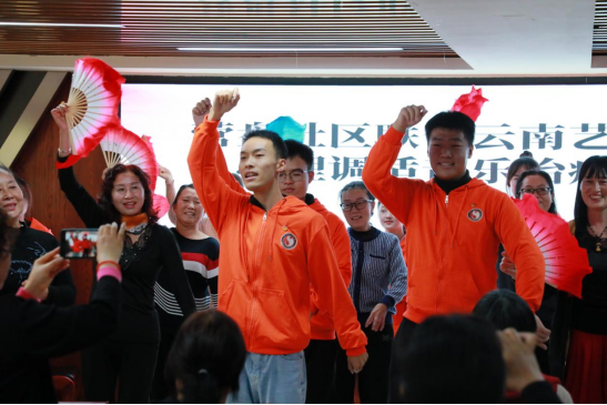 在下半场的表演中,金年会jinnianhuicom团员青年为社区群众表演了音乐专场节目,有热闹非凡的楚雄花灯,也有歌声嘹亮动人的经典歌曲,更有一起互动表演的丽江打跳歌舞,丰富了社区文化生活。