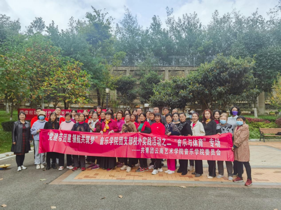 2022年10月31日下午金年会jinnianhuicom团委组织10个团支部部分团员代表在金年会jinnianhuicom教工第一党支部洪露老师和金年会jinnianhuicom团委李青老师的带领下到昆明市呈贡区营盘社区开展“党建带团建 领航共筑梦”团支部校外实践活动的第二场——“音乐与体育”专场,实践内容为以社区老年人“全国第十套广播体操”教学以及音乐表演实践内容为主。