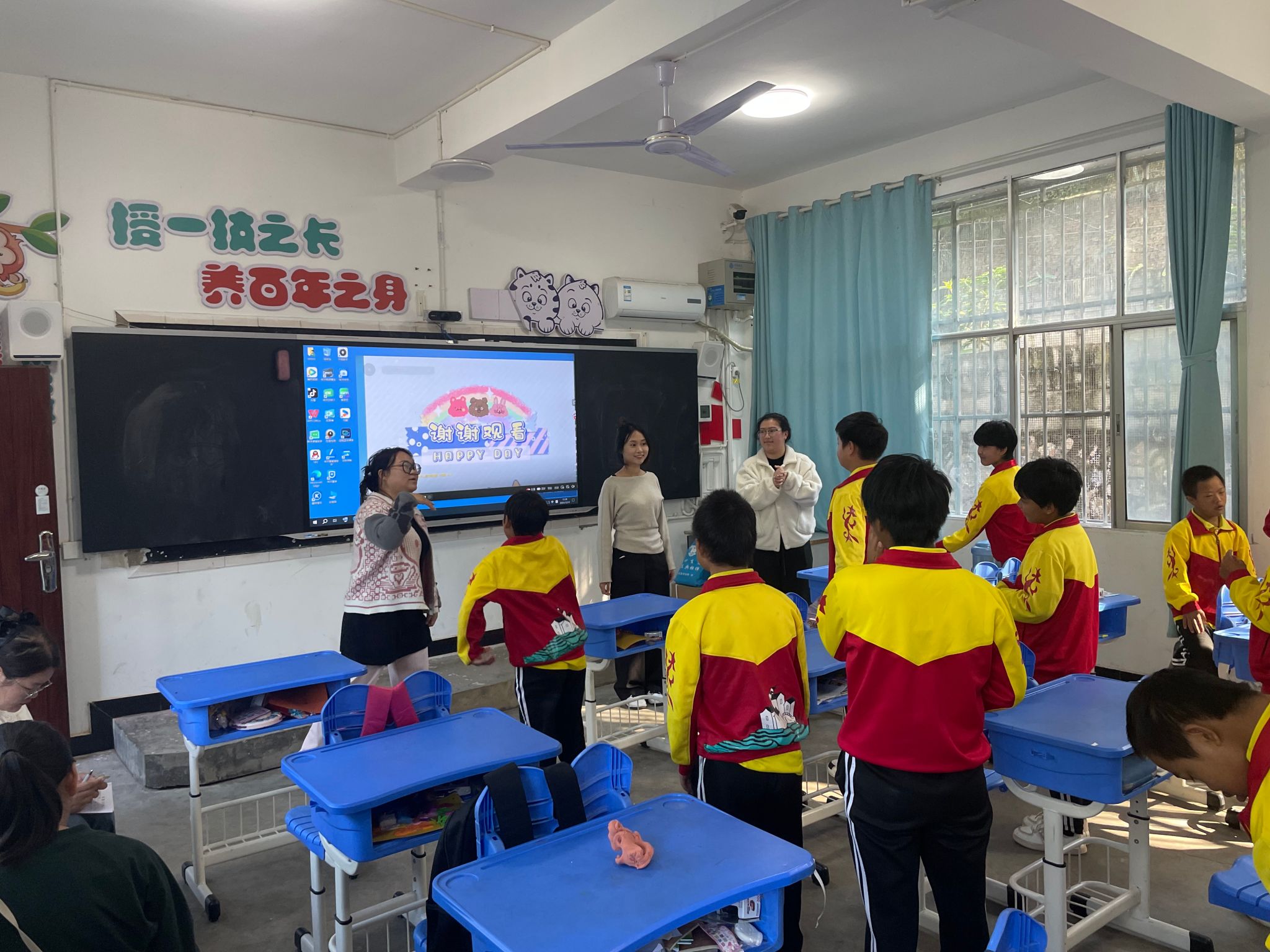 为充分贴合特殊学生群体的特点,本次授课以音乐律动和游戏为载体展开教学,由我校音乐教育系支教学生张译井、熊悦同、陈玺竹共同设计实施。课堂上,她们以经典儿歌《上学歌》为旋律主线,引导学生通过拍手、踏步等“身体乐器”感知节奏与节拍,在互动游戏中激发学生的参与热情。