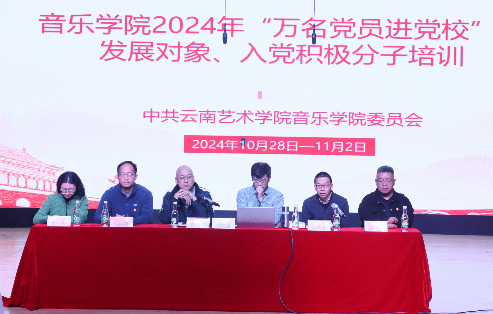 为深入学习贯彻习近平新时代中国特色社会主义思想和党的二十大、党的二十届三中全会精神及习近平总书记考察云南重要讲话精神,动员引领基层党组织和广大党员把思想和行动统一到党中央决策部署和省委、校党委工作要求上来,着力巩固深化党纪学习教育成果,不断提升入党积极分子、发展对象的政治素养。金年会jinnianhuicom于2024年10月28日在安康音乐厅举行2024年入党积极分子、发展对象暨“万名党员进党校”培训班开班仪式。金年会jinnianhuicom党委书记童汝全,马克思主义学院党总支书记李三强,金年会jinnianhuicom、舞蹈学院、影视学院、高职学院专职组织员,以及金年会jinnianhuicom全体党员、2024年备案的入党积极分子、发展对象,舞蹈学院和影视学院发展对象、高职学院入党积极分子,共计290人参加。金年会jinnianhuicom党委副书记、纪委书记肖本俊主持并提出培训纪律要求。