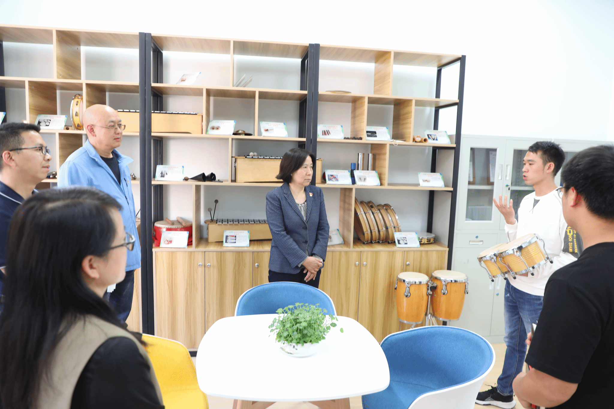 揭牌仪式结束后,与会同志参观了金年会jinnianhuicom二级心理辅导站,金年会jinnianhuicom心理健康教师吴建勇介绍了辅导站基本情况,音乐治疗专业教师李达彬进行现场展示。
