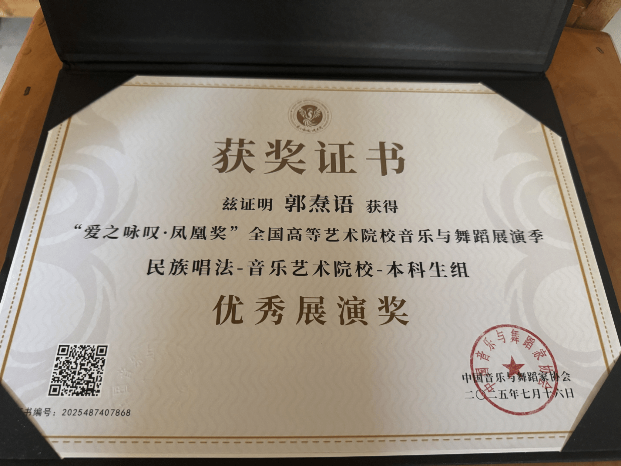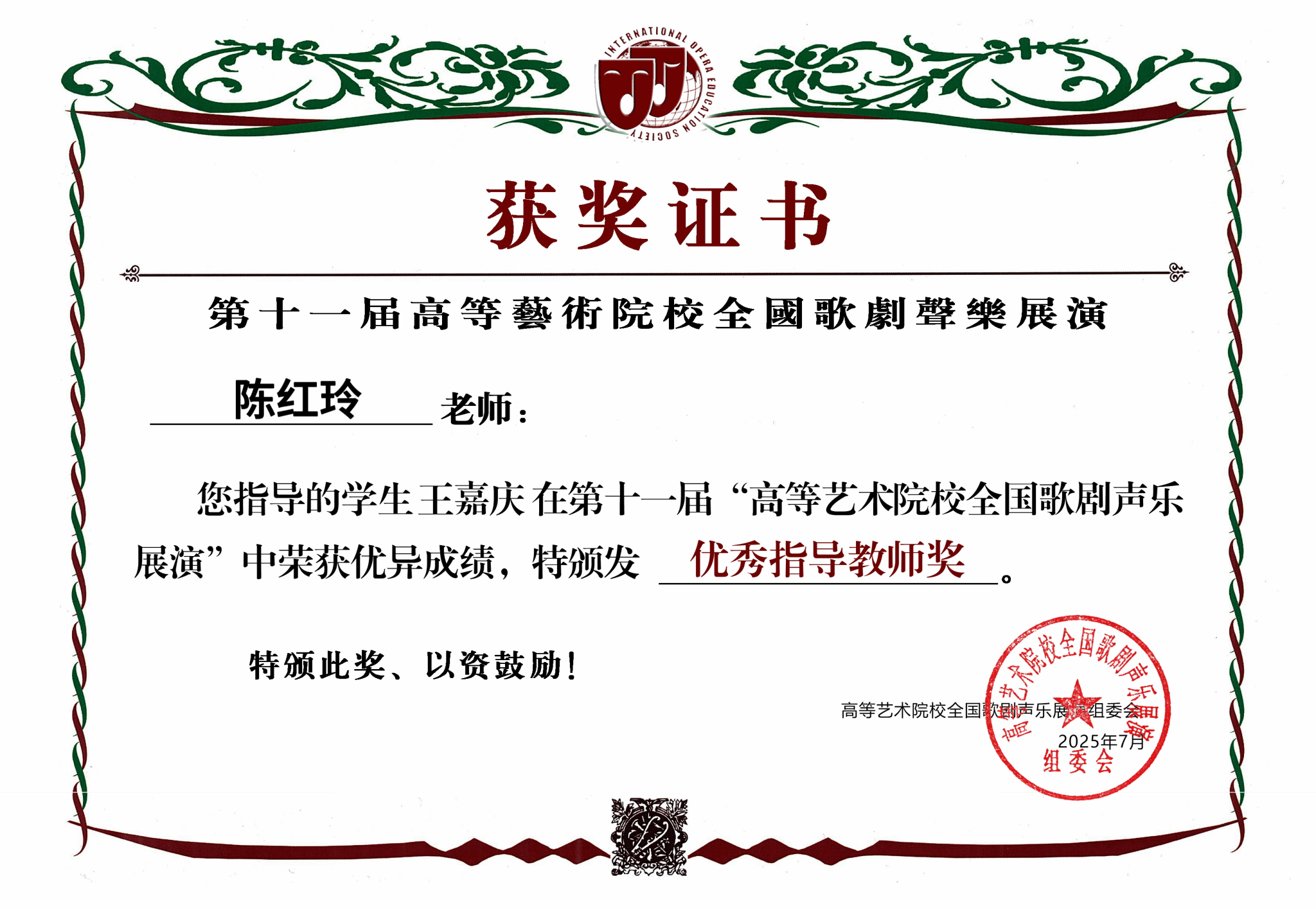 金年会jinnianhuicom声乐系师生凭借出色的演唱技巧与情感表达,在各类专业赛事中崭露头角、捷报频传,尽显扎实专业功底与艺术风采。师生同频发力、双向出彩,不仅是声乐系教学成果的生动体现,更彰显了学院在艺术人才培养领域的坚实实力,并为推动专业建设与艺术教育发展注入强劲动力。